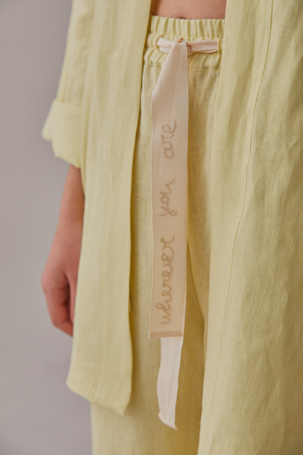 Cotton tape belt with embroidered message made only for you.